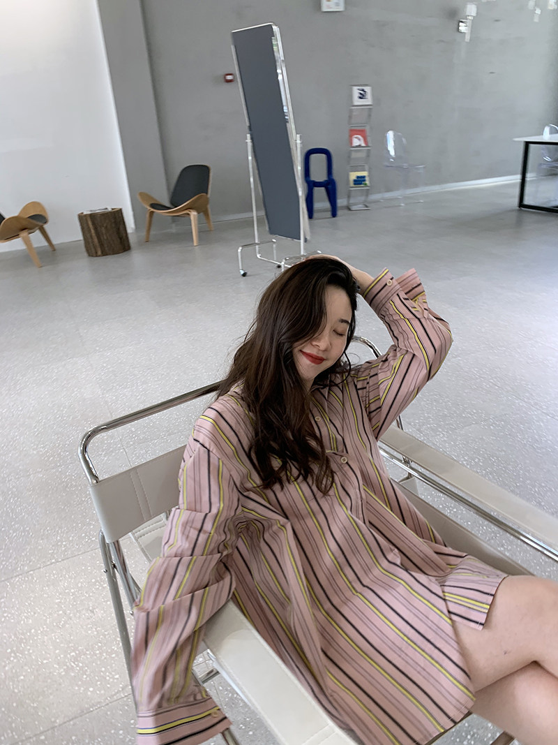 2021夏季新款网红同款“海盐汽水”男友风粉色条纹设计衬衫上衣女热门设计联盟服务商