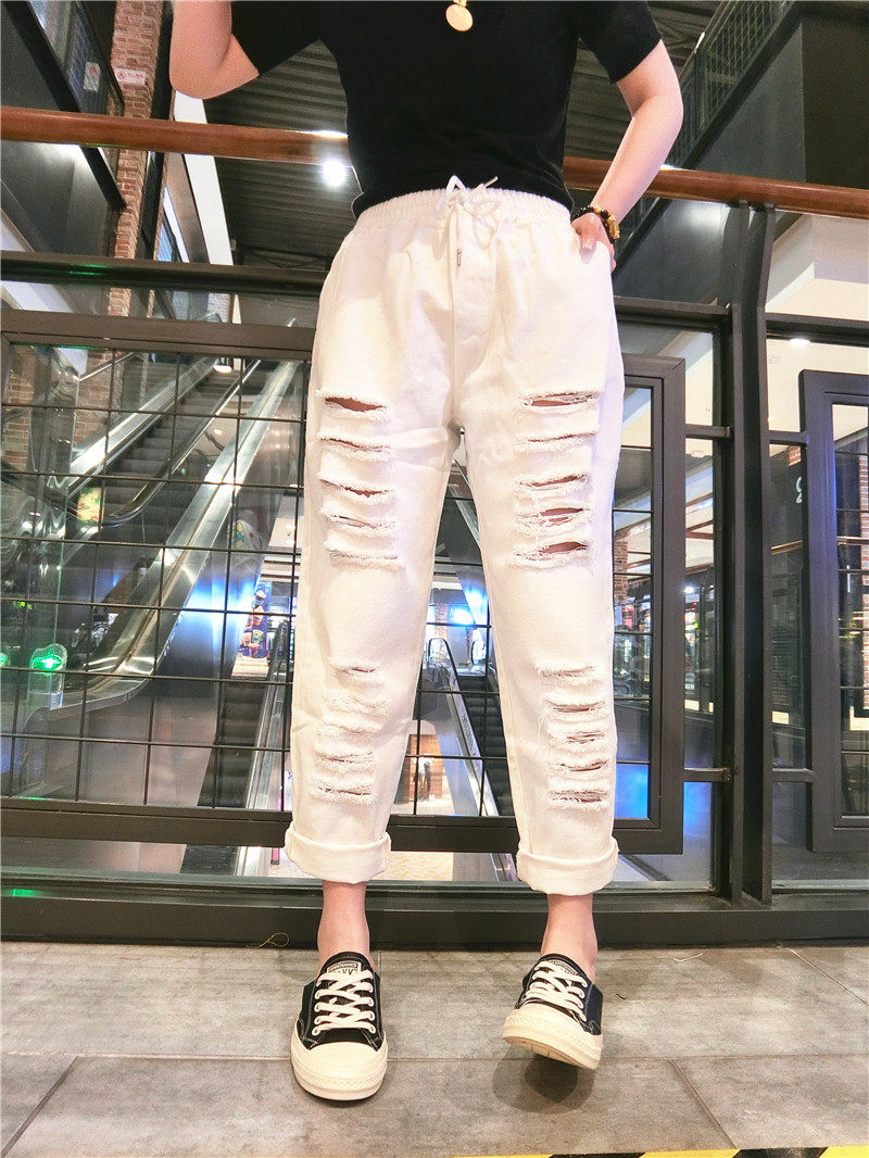 2021夏装新款时尚百搭破洞牛仔裤女工装裤宽松阔腿裤子女九分裤热门设计联盟服务商