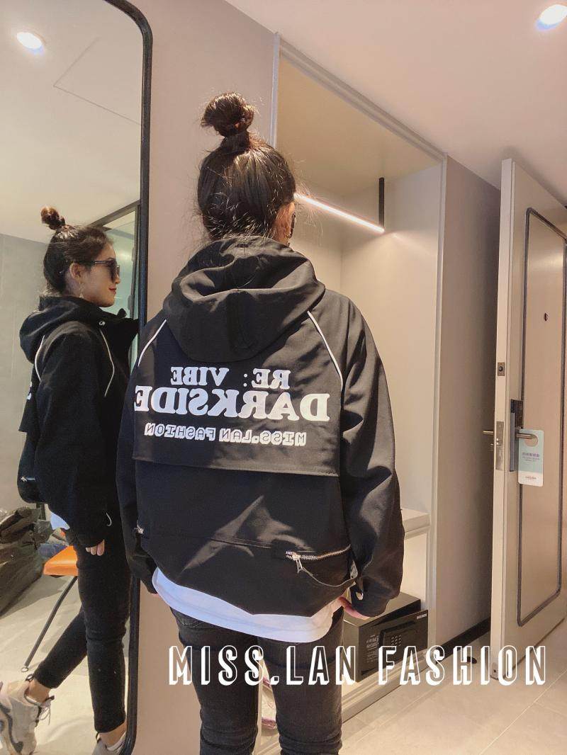 2021春欧货女士风衣宽松连帽外套工装风拉链通勤款后背字母大码潮热门设计联盟服务商