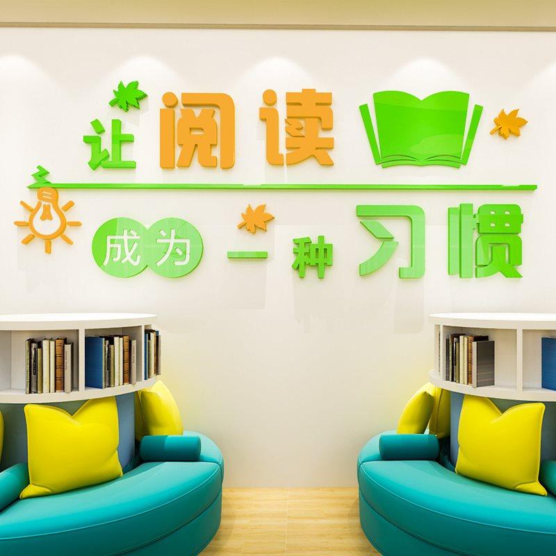 。图书馆3d立体墙贴画读书角阅读室墙面装饰布置班级教室文化背景热门设计联盟服务商
