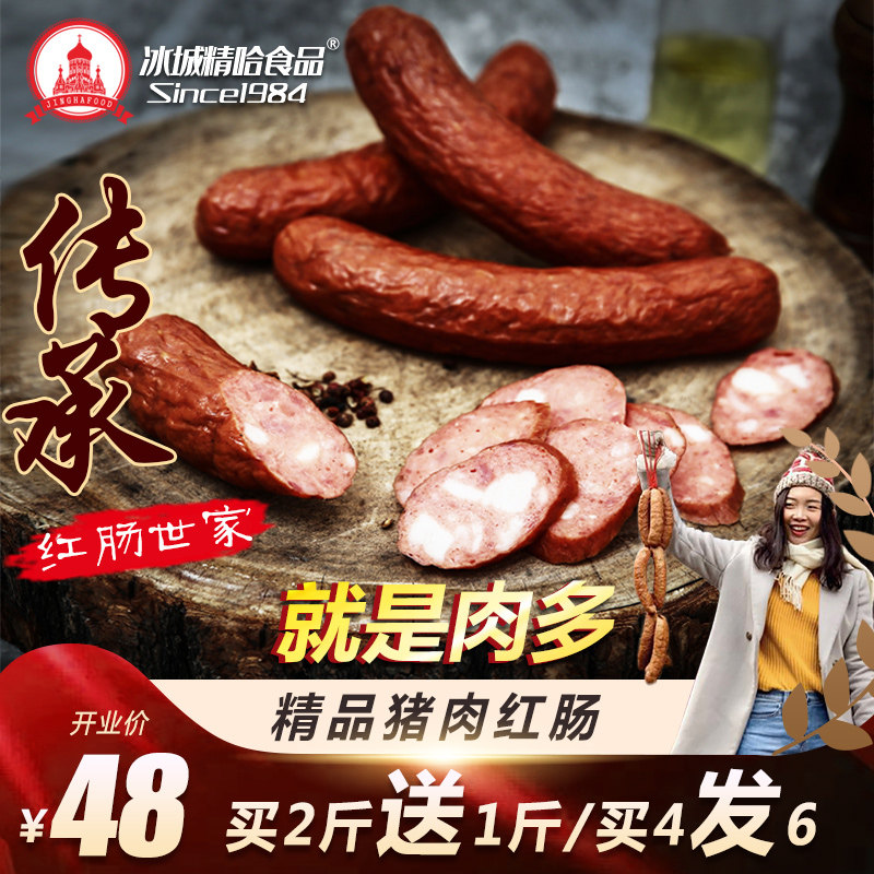 500g正宗哈尔滨红肠纯猪肉肠东北特产儿童肠俄式香肠即食买2送1热门设计联盟服务商