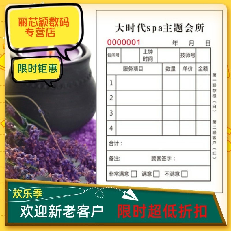 洗浴足浴单养生SPA桑拿会所消费单收银单技师服务单日报表定做热门设计联盟服务商