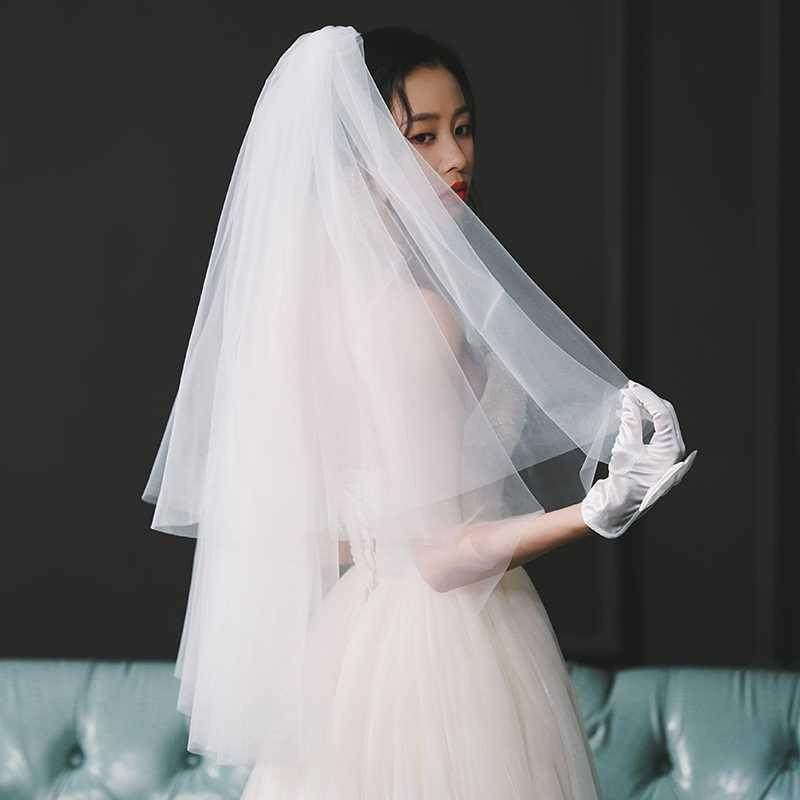 新娘女道具红拍照短款超网头纱头纱拍照头饰结婚领证系仙森婚纱热门设计联盟服务商