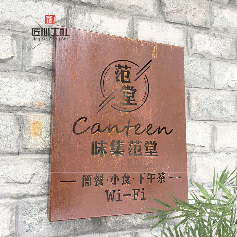 生锈镂空招牌个性创意复古铁艺仿古铁锈灯箱户外门头发光字广告。热门设计联盟服务商