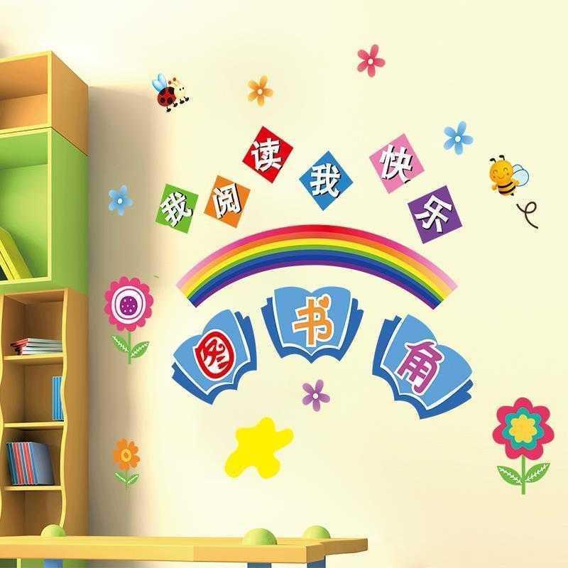 墙贴纸幼儿园卡通公告栏墙面装饰品读书阅读图书角图书馆贴画彩虹热门设计联盟服务商