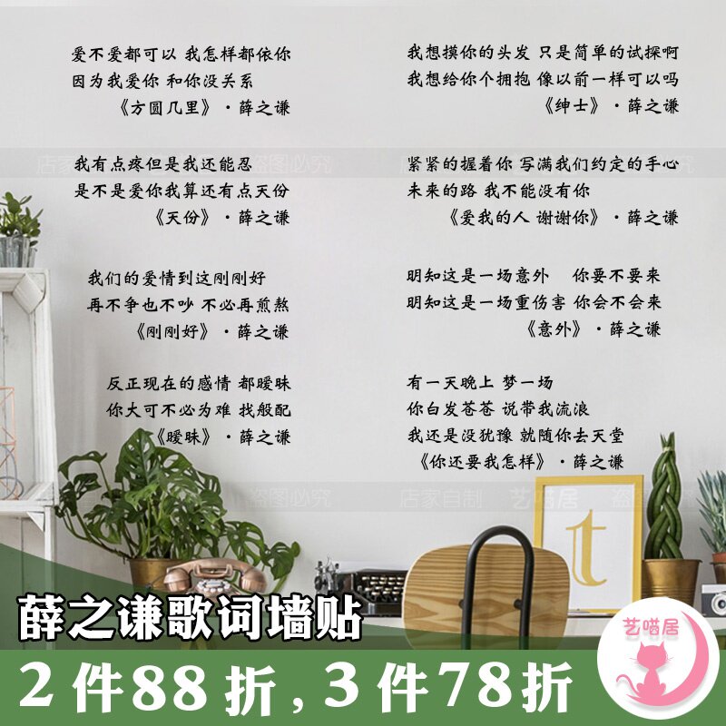 ins北欧风薛之谦歌词墙贴简约创意文字玻璃装饰贴纸卧室宿舍墙。热门设计联盟服务商