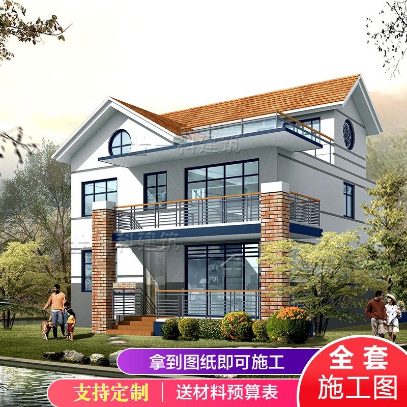 YK352新农村二层半别墅设计图纸乡村三层自建房子简约大气简单热门设计联盟服务商
