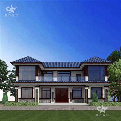 新中式二层别墅建筑施工图纸两层小洋楼豪华设计效果图农村四合院热门设计联盟服务商
