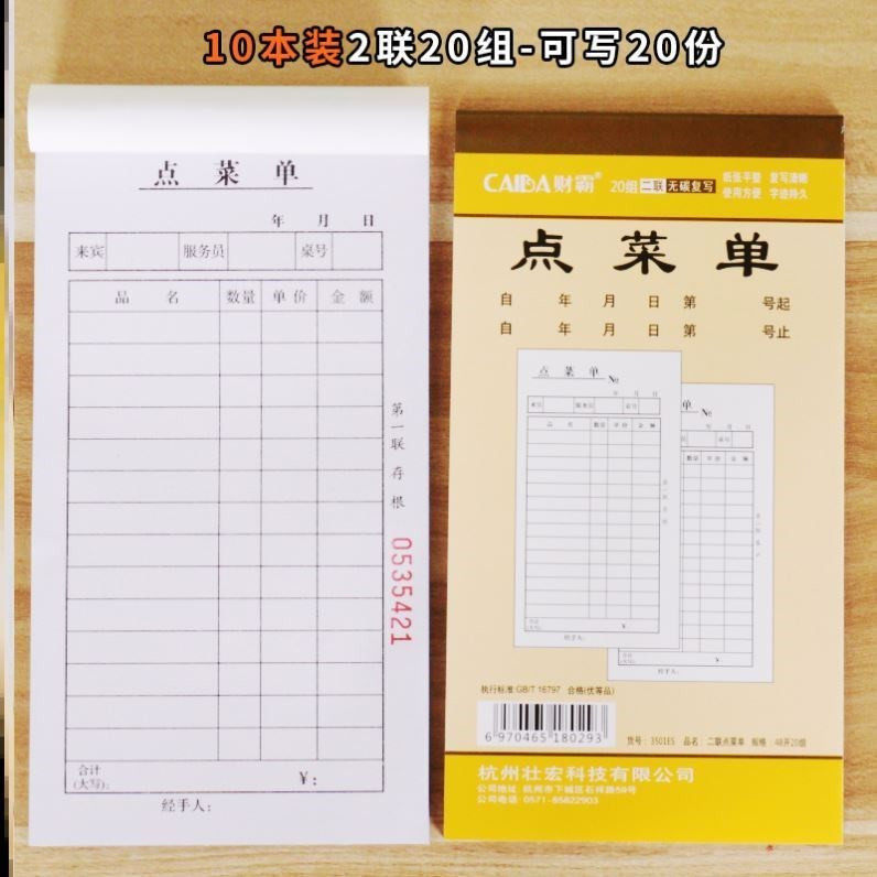 餐厅3联2联会所四联单酒水单大排档手写纸写菜单二联二联单点菜本热门设计联盟服务商