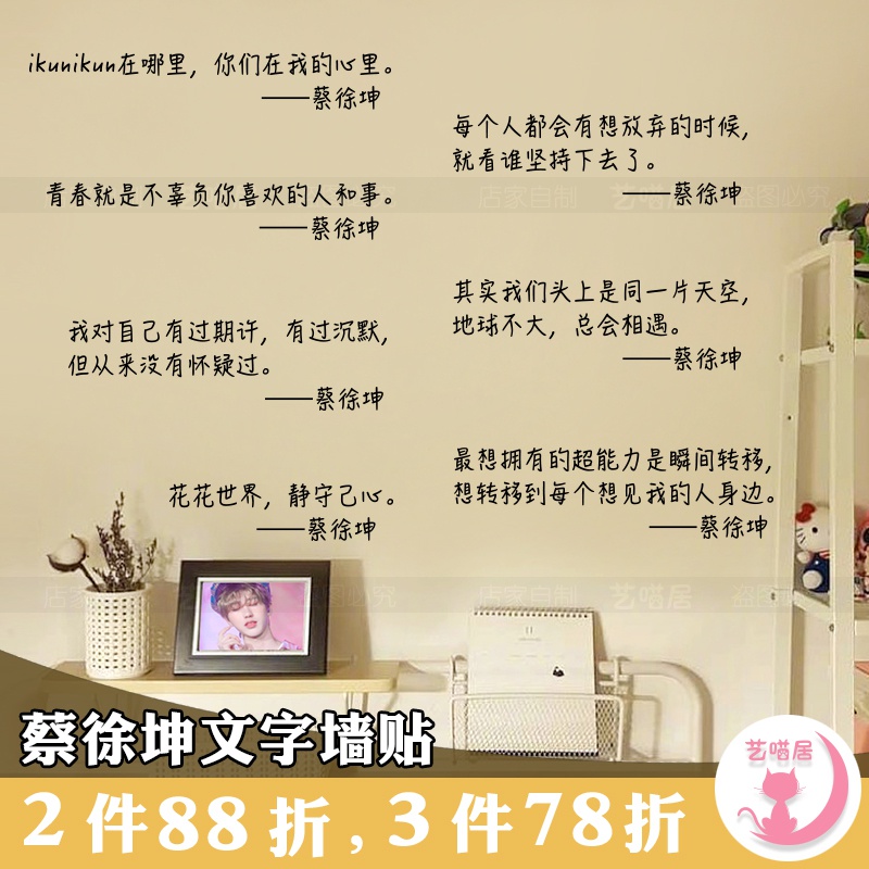 明星蔡徐坤语录文字歌词墙贴周边励志装饰卧室温馨宿舍自粘贴纸。热门设计联盟服务商