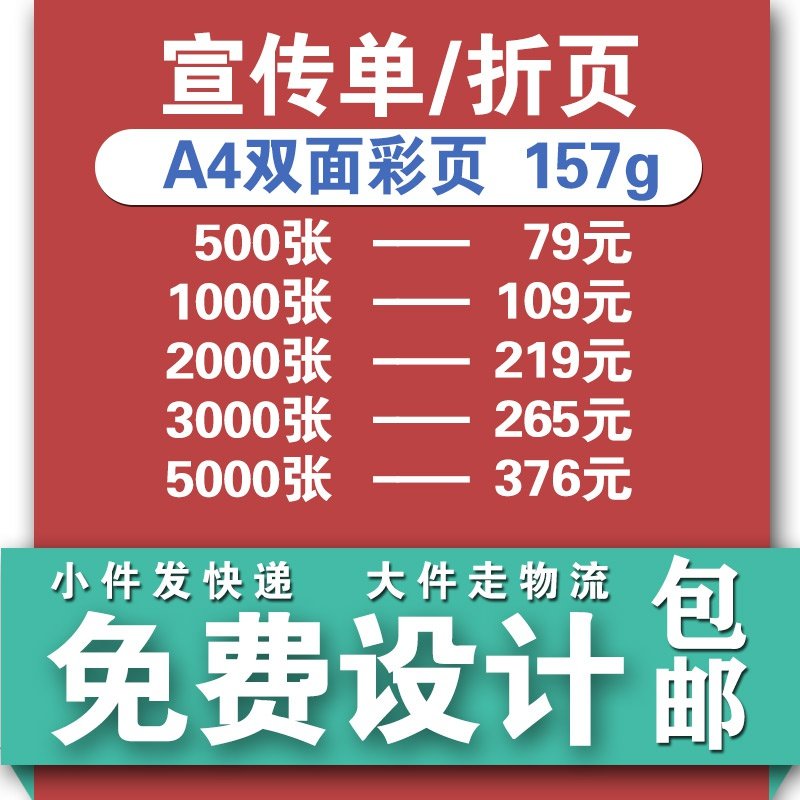 A4彩页广告单打印小宣传单海报印刷订制定做代金券免费设计三折。热门设计联盟服务商