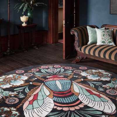 楼兰美惠 美式复古轻奢黑色圆形地毯客厅卧室地垫样板间欧式地毯热门设计联盟服务商