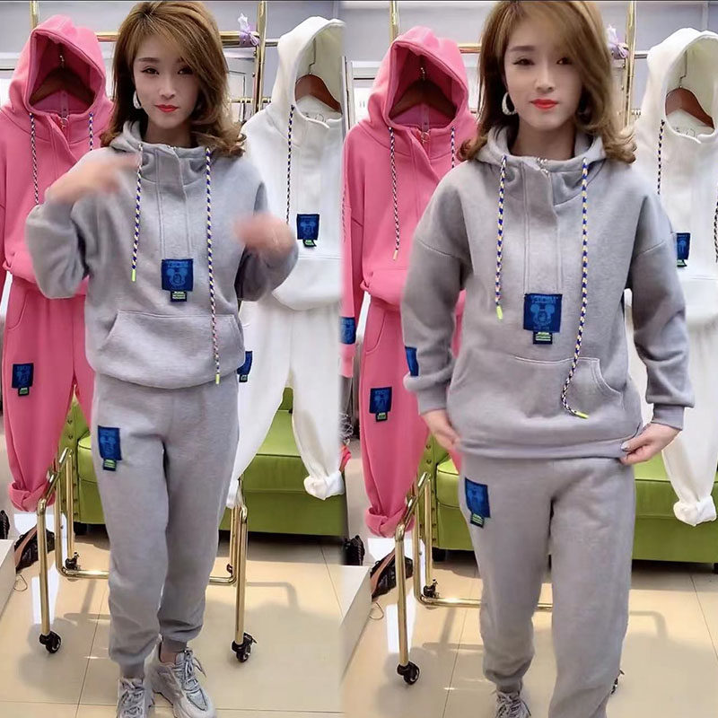 2021秋冬加绒卫衣卫裤休闲套装女宽松网红款长袖长裤学生秋装潮热门设计联盟服务商