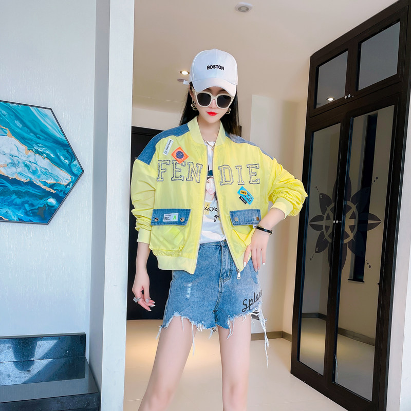 2021年夏季新款洋气欧货字母图标拼接牛仔设计棒球潮流防晒外套热门设计联盟服务商