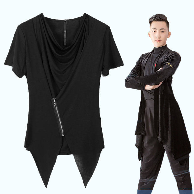 小王子服饰果果不不新款吉特巴舞蹈演出衣服男士拉丁舞堆堆领短袖热门设计联盟服务商