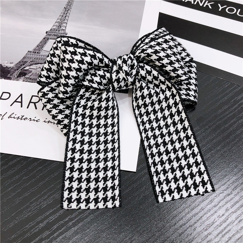 韩国布艺千鸟格蝴蝶结发夹马尾夹手工布艺飘带簧夹洋气款发饰热门设计联盟服务商