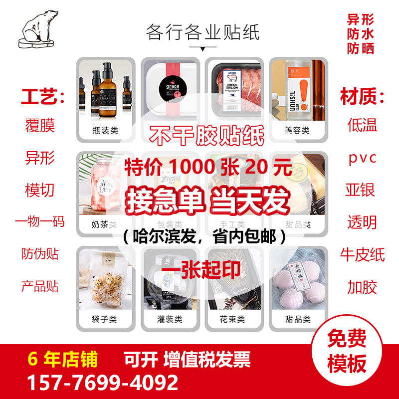 不干胶贴纸定做二维码贴透明亚银牛皮纸圆形异形易碎贴产品贴定制热门设计联盟服务商