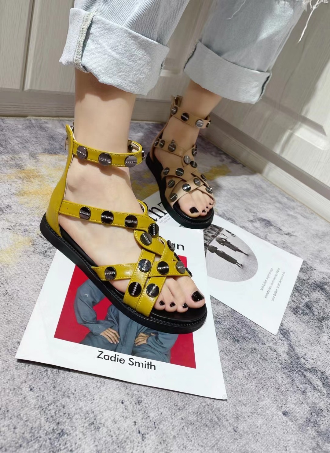 镂空女鞋真皮2022款金属扣时装凉鞋交叉绑带后跟网红百搭黄色热门设计联盟服务商