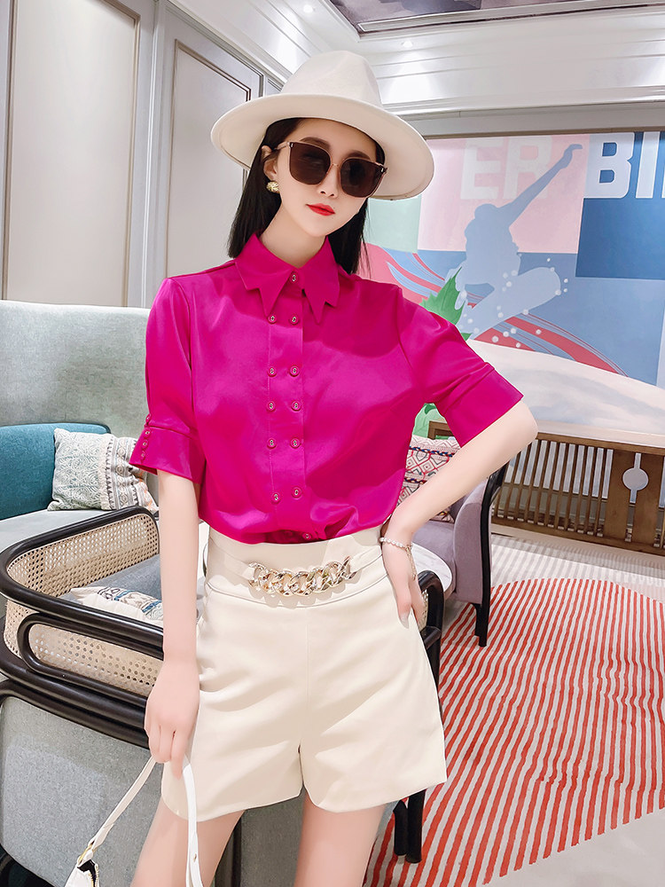 果冻色衬衫女短袖百搭设计感上衣夏季双排扣洋气欧货小衫时尚潮春热门设计联盟服务商