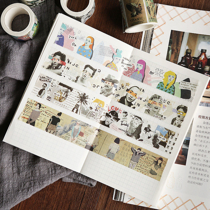 创意复古女孩和纸胶带 文具diy手账日记本子装饰海报纸小贴画系列热门设计联盟服务商