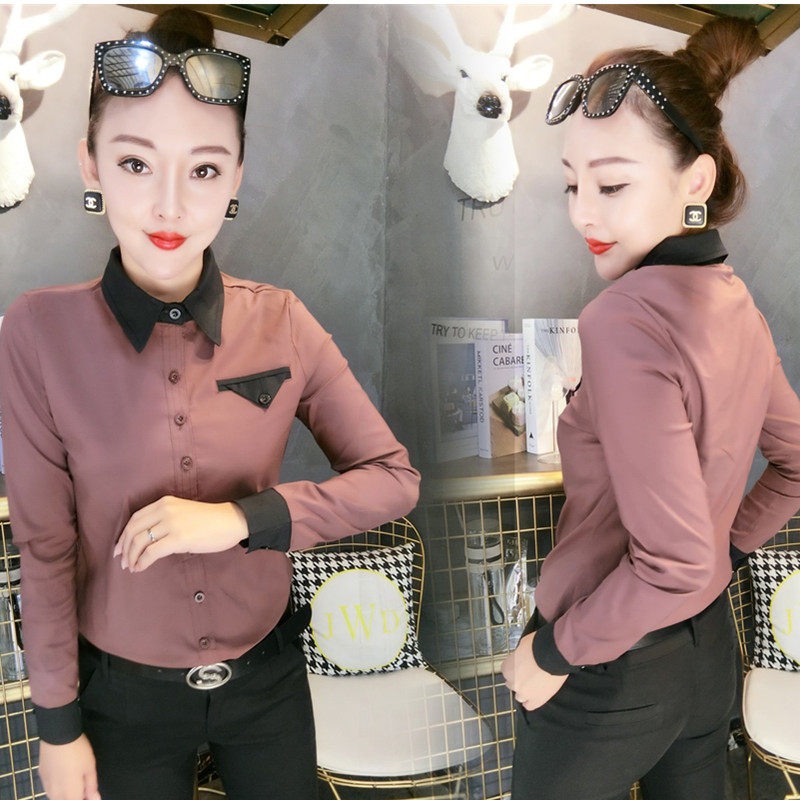 2021秋季新款衬衫女韩版气质修身拼色长袖设计感百搭打底衫衬衣潮热门设计联盟服务商